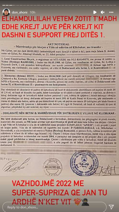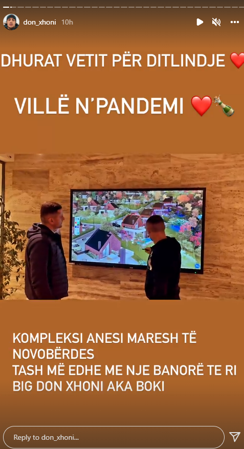 “Dhuratë vetit për ditëlindje, Villë n’pandemi” ishte mbishkrimi i Don Xhonit.