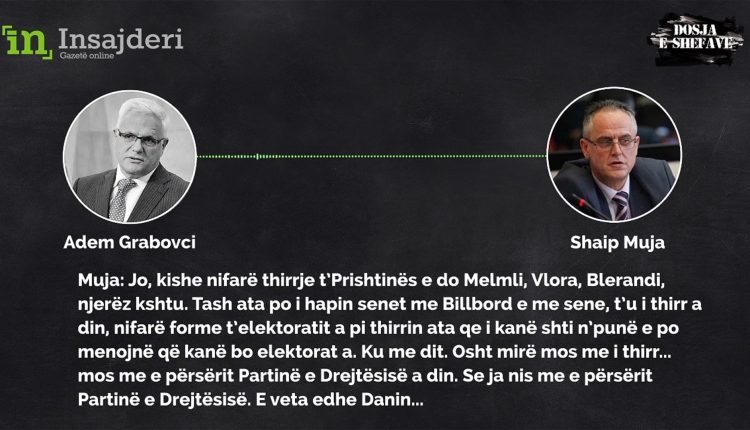 Një seri e përgjimeve të publikuara nga Insajderi rreth 10 vite më parë, zbulojnë një bisedë mes ish-deputetit të PDK-së, Shaip Muja, dhe ish-shefit të grupit parlamentar të PDK-së, Adem Grabovci. Në këtë bisedë, Muja akuzon Memli Krasniqin, Vlora Çitakun dhe disa eksponentë të tjerë të PDK-së nga Prishtina për aktivitete partiake të zhvilluara pa dijeninë e deputetëve dhe strukturave lokale të partisë.