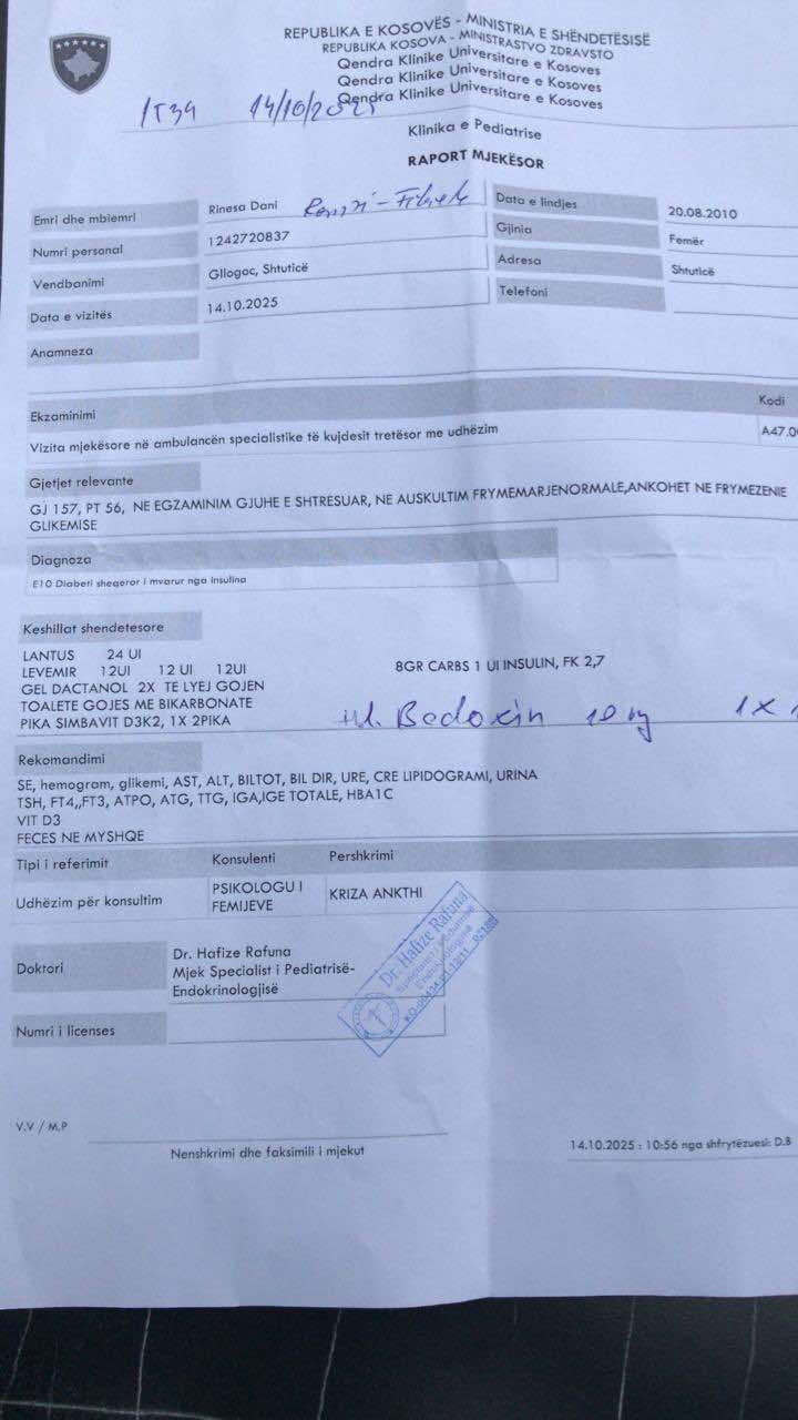Numri kontaktues: 049-586-368 (Babai i Rinesës)