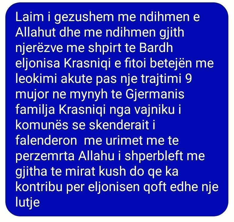 Return to "14-vjeçarja nga Drenica fiton betejën me leukemi akute"
