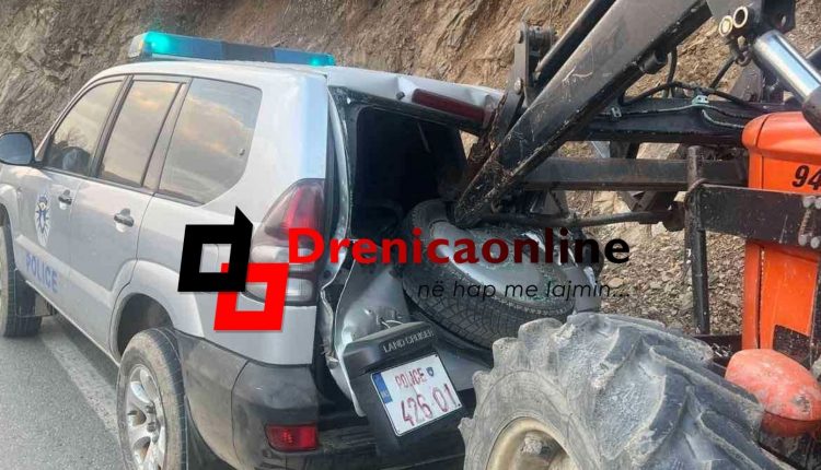 Traktori me dru ilegale godet veturën e Policisë, lëndohen katër zyrtarë policor